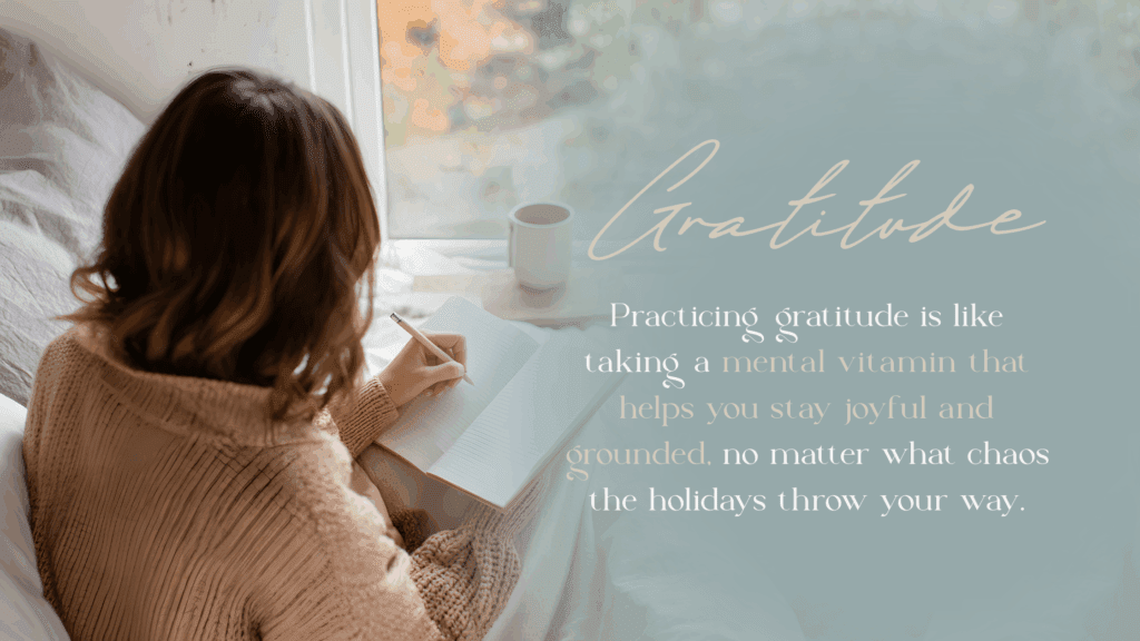 Science confirms that people who regularly practice gratitude experience 25% higher life satisfaction and lower stress. Each morning, jot down three things you’re thankful for. It’s like a mental vitamin that helps you stay joyful and grounded, no matter what chaos the holidays throw your way.
