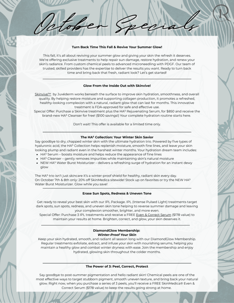 Experience healthy, hydrated, and glowing skin year-round with a Refinery DiamondGlow® Membership!